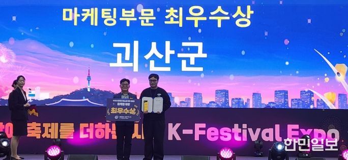 한민일보 서울포커스 김다남 기자 | 충북 괴산군은 지난 17일부터 사흘간 수원컨벤션센터에서 열린 ‘제6회 대한민국 대표 축제 박람회’에서 마케팅 부문 최우수상을 받았다고 20일 밝혔다.
