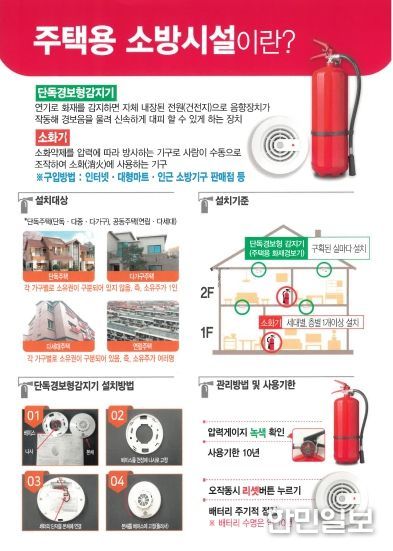 이에 따라 천안서북소방서는 공동주택과 단독주택을 대상으로 소방시설 설치 안내와 점검 홍보를 지속적으로 추진하고 있다.