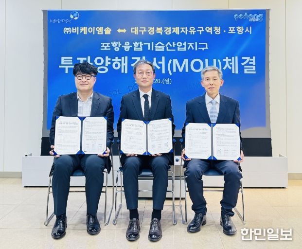 한민일보 서울포커스 임철현 기자 | 포항시와 대구경북경제자유구역청은 20일 ㈜비케이엠솔과 포항융합기술산업지구 내 투자 유치를 위한 양해각서(MOU)를 체결했다.