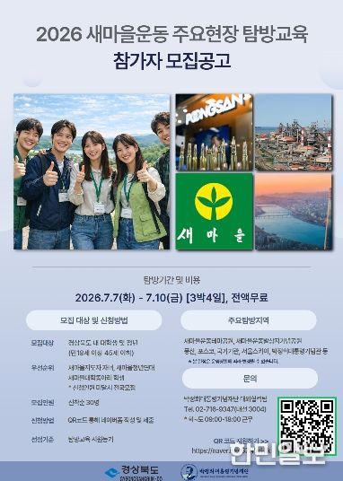 한민일보 서울포커스 김은금 기자 | 경상북도와 박정희대통령기념재단은 청년세대의 새마을운동에 대한 이해도를 높이고 가치 확산을 위해 ‘2026 새마을운동 주요현장 탐방교육’을 운영하고 참가자를 모집한다.