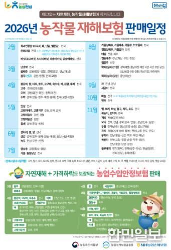 4월부터 벼·대파·고추 등을 시작으로 품목별로 순차 가입이 가능하며, 가입을 바라는 농업인은 가까운 농·축협이나 원예농협에 신청할 수 있다.
