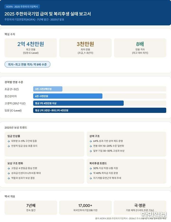 Salaries at Foreign-Invested Companies in Korea Reach KRW 240 Million at the Top and KRW 30 Million at the Bottom… 8-Fold Gap - KOFA Releases “2025 White Paper on Foreign-Invested Companies in Korea” (Enhanced Edition)