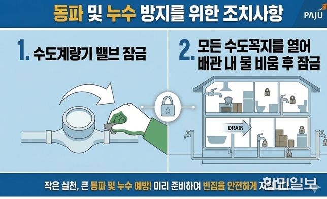 한민일보 서울포커스 진광성 기자 | 파주시가 겨울철 한파와 여름철 집중호우로 반복되는 빈집(3개월 이상 수도 사용량이 없는 수용가) 수도 누수 문제 해결에 본격적으로 나선다.