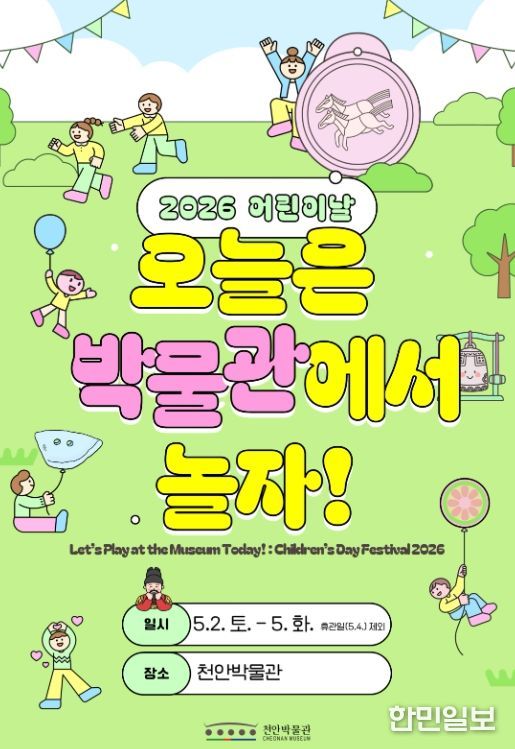 한민일보 서울포커스 황준형 기자 | 천안박물관은 내달 2~ 5일 어린이날 특별행사 ‘오늘은 박물관에서 놀자!’를 운영한다고 21일 밝혔다.