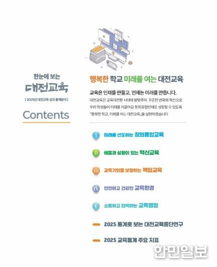 한민일보 서울포커스 유한희 기자 | 대전교육과학연구원 대전교육정책연구소는 2025년 대전교육 주요 정책의 성과를 종합적으로 분석한 ‘한눈에 보는 대전교육’을 발간했다고 밝혔다.
