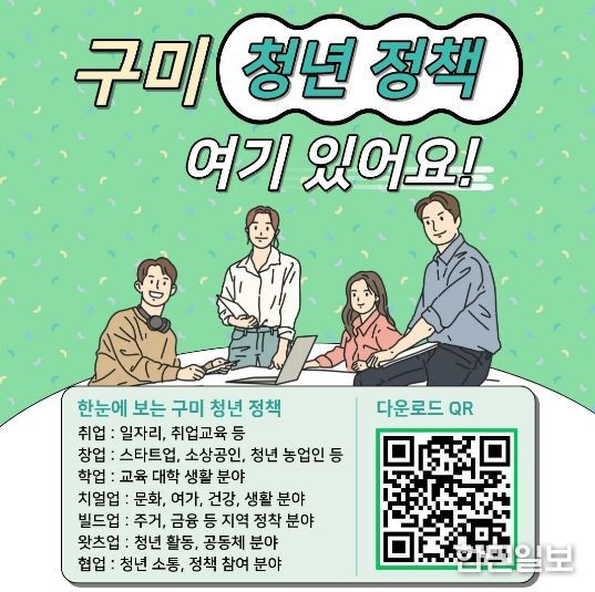 정성현 구미시장 권한대행은 “청년들이 필요한 정보를 찾기 어려워 정책을 놓치는 일이 없도록 돕기 위해 이번 마스터북을 제작했다”며 “앞으로도 청년의 삶에 실질적인 도움이 되는 정책을 지속적으로 발굴하고 홍보해 나가겠다”고 밝혔다.