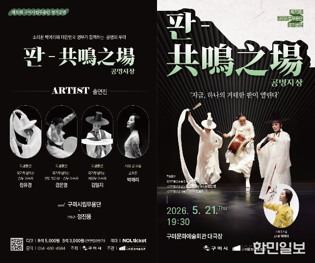 한민일보 서울포커스 김봉순 기자 | 구미시는 5월 21일 오후 7시 30분, 구미시문화예술회관 대공연장에서 ‘제70회 구미시립무용단 정기공연 '판-共鳴之場공명지장'’을 개최한다.