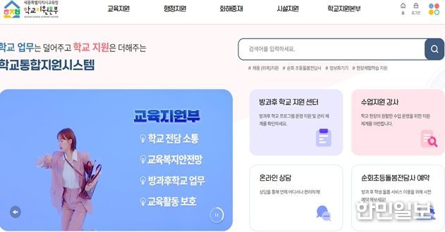 한민일보 서울포커스 임경복 기자 | 세종특별자치시교육청학교지원본부(본부장 이미자)는 학교 현장의 행정업무를 온라인에서 한 번에 해결할 수 있는 ‘학교통합지원시스템’ 구축을 완료하고 22일부터 본격적인 운영에 들어간다.