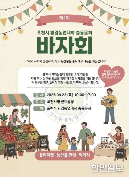 한민일보 서울포커스 심기옥 기자 | 포천시 환경농업대학 총동문회가 오는 4월 23일, 지역사회와의 상생과 나눔을 실천하기 위한 ‘제1회 나눔 바자회’를 개최한다.