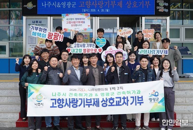 한민일보 서울포커스 임광현 기자 | 전남 나주시 건축허가과(과장 김훈모)와 영광군 건축허가과(과장 윤상근)는 고향사랑기부제의 정착과 지역의 상생발전을 위해 지난 20일 나주시청에서 상호 교차 기부를 실시했다고 밝혔다.
