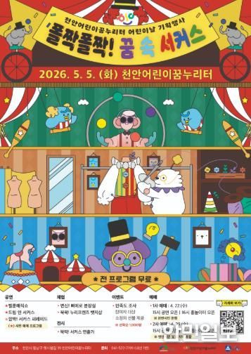 한민일보 서울포커스 황준형 기자 | 천안시가 설립하고 백석대학교 산학협력단이 위탁 운영하는 천안어린이꿈누리터가 오는 5월 5일 어린이날을 맞아 기획행사 '폴짝폴짝! 꿈 속 서커스'를 운영한다.