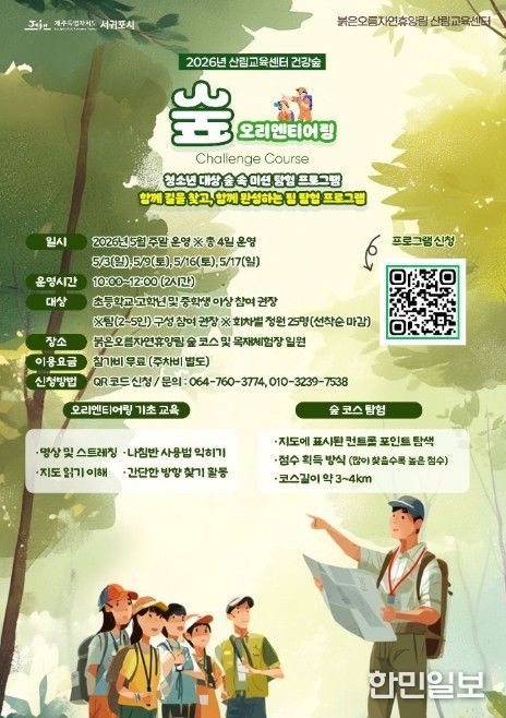 한민일보 서울포커스 김다남 기자 | 서귀포시 붉은오름자연휴양림 산림교육센터 ‘건강숲’에서는 청소년의 신체 건강 증진과 정서적 안정, 그리고 자연 가치관 형성을 동시에 돕는 핵심 프로그램을 운영하고 있다.