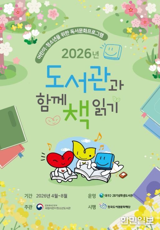 한민일보 서울포커스 임경복 기자 | 대구2·28기념학생도서관은 국립어린이청소년도서관이 주최한 '2026년 도서관과 함께 책 읽기' 공모사업에 선정되어, 정보취약계층 어린이를 위한 맞춤형 독서문화 프로그램을 운영한다.