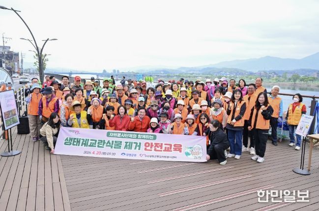 한민일보 서울포커스 차재만 기자 | 양평군종합자원봉사센터는 지난 20일 오전 9시 양평남한강테라스 하부 산책로 일대에서 ‘2026년 자원봉사 리빙랩 3고 YP(줍고·잇고·지키고) 사업’의 일환으로 생태계 교란 식물 제거 활동을 실시했다.