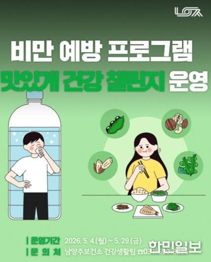 한민일보 서울포커스 김성윤 기자 | 남양주시는 남양주보건소가 5월 한 달간 실천형 비대면 비만 예방 프로그램 ‘맛있게 건강 챌린지’를 운영한다고 21일 밝혔다.
