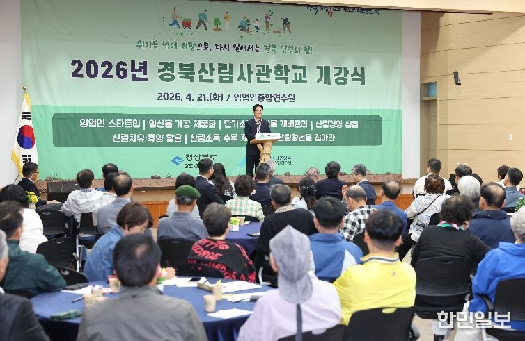 한민일보 서울포커스 김은금 기자 | 경상북도는 4월 21일, 산림조합중앙회 임업인종합연수원에서 교육생 등 160명이 참석한 가운데 ‘2026년 경북산림사관학교 개강식’을 개최했다.