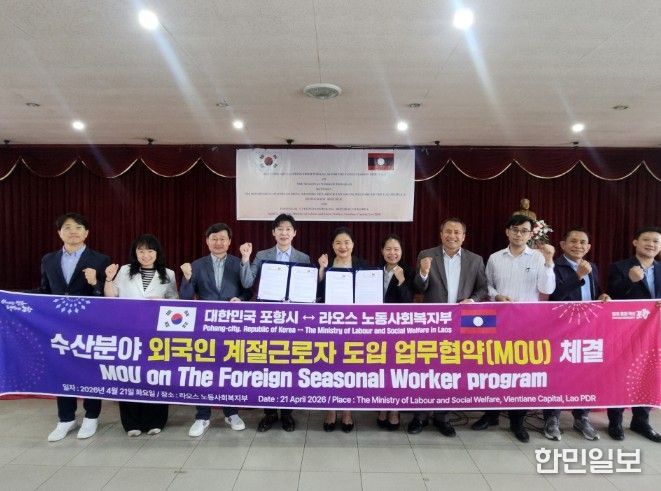 한민일보 서울포커스 임경복 기자 | 포항시는 지역 내 과메기·오징어 건조 등 수산물가공업 분야의 인력 부족 문제를 해결하기 위해 21일(현지시간) 라오스 비엔티안에서 라오스 노동사회복지부와 ‘외국인 계절근로자 도입을 위한 업무협약(MOU)’을 체결했다.