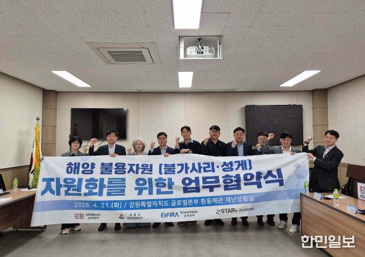한민일보 서울포커스 곽중희 기자 | 강원특별자치도 제2청사(본부장 손창환)는 4월 21일 강원특별자치도청 제2청사 환동해관에서 강릉시, 한국수산자원공단, ㈜스타스테크와 함께 ‘해양 불용자원 자원화’를 위한 업무협약을 체결했다고 밝혔다.