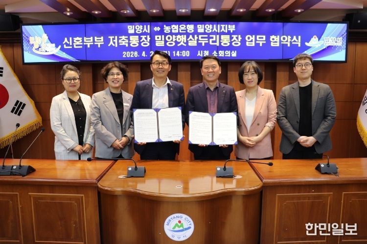한민일보 서울포커스 김은금 기자 | 경남 밀양시는 21일 시청 소회의실에서 농협은행 밀양시지부와 ‘밀양햇살두리통장 지원사업’의 원활한 추진을 위한 업무협약을 체결했다.