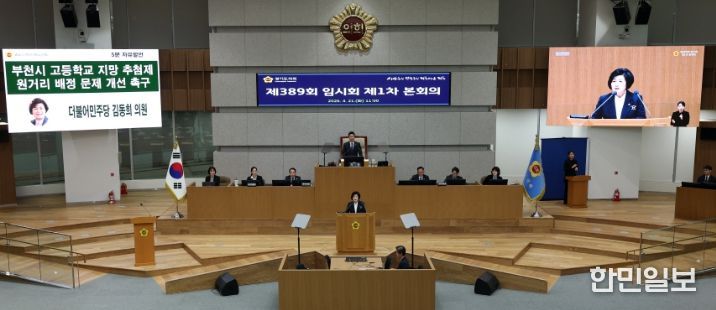 한민일보 서울포커스 진광성 기자 | 경기도의회 여성가족평생교육위원회 김동희 부위원장(더불어민주당, 부천6)은 제389회 경기도의회 임시회 제1차 본회의 5분 자유발언을 통해 부천시 고등학교 지망 추첨제 운영 과정에서 발생하고 있는 원거리 배정 문제를 지적하고 제도 개선을 강력히 촉구했다.