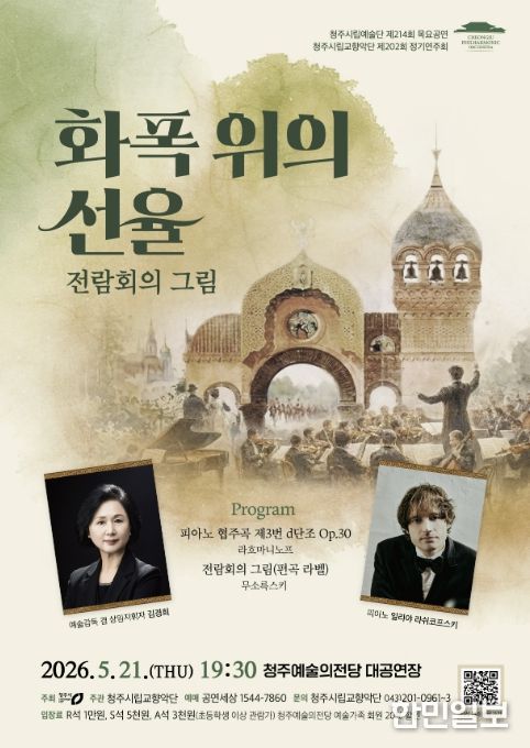 한민일보 서울포커스 김다남 기자 | 청주시립교향악단은 오는 5월 21일 오후 7시 30분 청주예술의전당 대공연장에서 제202회 정기연주회 ‘화폭위의 선율-전람회의 그림’을 개최한다고 22일 밝혔다.