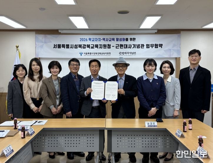 한민일보 서울포커스 김봉순 기자 | 서울 강북구가 (사)민족문제연구소에 위탁 운영 중인 근현대사기념관이 지난 16일 서울특별시성북강북교육지원청과 ‘체험형 교육 기회 확대 및 역사교육 활성화’를 위한 업무협약(MOU)을 체결했다고 밝혔다.