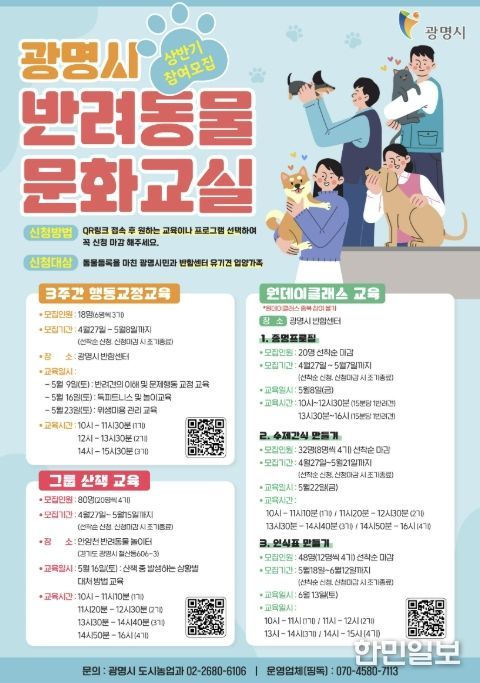 한민일보 서울포커스 임광현 기자 | 광명시가 반려인과 반려견의 행복한 일상을 위한 맞춤형 교육 프로그램을 운영한다.