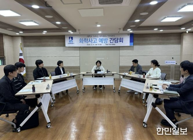 한민일보 서울포커스 진광성 기자 | 수원특례시는 21일 영통구청 상황실에서 관내 대학교 안전관리자들과 ‘연구실험실 화학사고 예방 간담회’를 열고, 사고 예방·대응 방안을 논의했다.