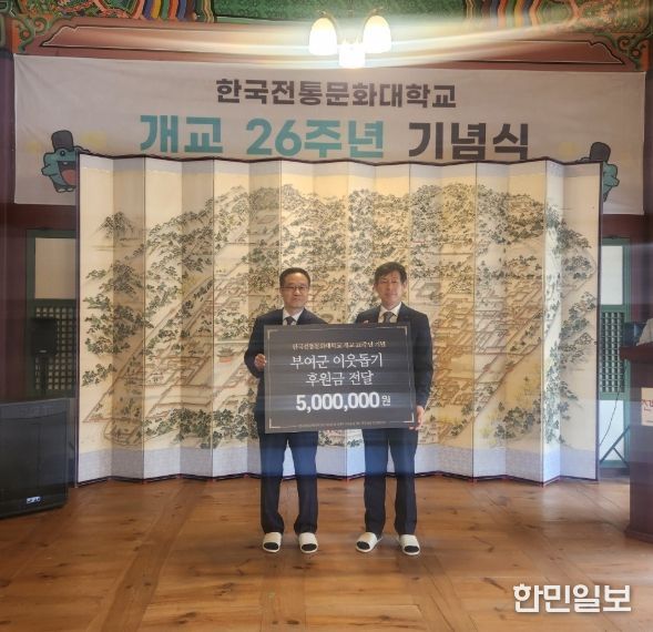 한민일보 서울포커스 유돈상 기자 | 한국전통문화대학교 교직원일동은 개교 26주년 기념행사에서 저소득 가구의 초·중·고 학생 장학금으로 사용해 달라며 이웃돕기 성금 500만 원을 부여군에 기탁했다고 22일 밝혔다.