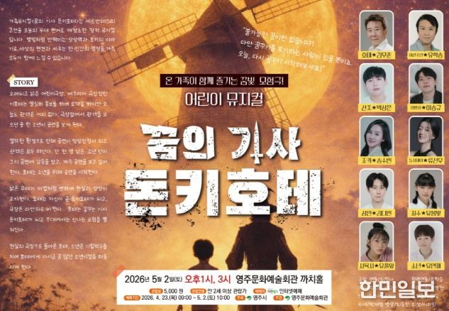 한민일보 서울포커스 김봉순 기자 | 영주시는 오는 5월 2일 오후 1시와 오후 3시, 두 차례에 걸쳐 영주문화예술회관 까치홀에서 어린이 뮤지컬 ‘돈키호테’를 선보인다.