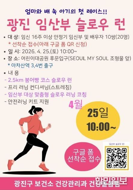 구 관계자는 “임산부 슬로우 러닝은 부부가 배 속 아기와 처음으로 호흡을 맞추며 함께 걸어가는 뜻깊은 시작”이라며, “앞으로도 현장의 목소리를 반영해 임산부의 신체와 정서 건강을 함께 살피고, 아이 키우기 좋은 환경을 만들어 나가겠다”고 말했다.