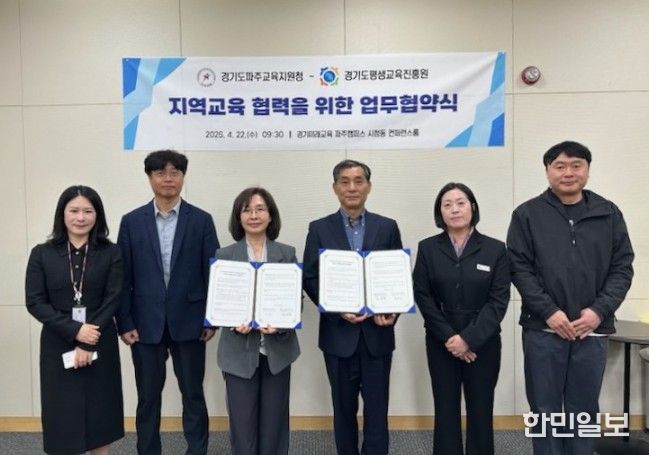 한민일보 서울포커스 진광성 기자 | 경기도파주교육지원청은 22일, 경기도평생교육진흥원과 파주 지역 미래인재 양성을 위한 교육 협력 체계 구축 및 상호 자원 공유를 골자로 하는 업무협약(MOU)을 체결했다고 밝혔다.