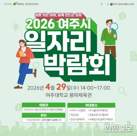 한민일보 서울포커스 전희주 기자 | 여주시는 오는 4월 29일 오후 2시부터 5시까지 여주대학교 용마체육관에서 2026 여주시 일자리박람회를 개최한다고 밝혔다.