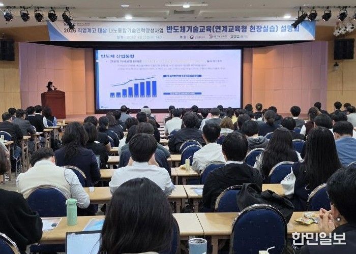 한민일보 서울포커스 김윤이 기자 | 경기도교육청이 22일 경기도경제과학진흥원에서 한국나노기술원과 함께 도내 직업계고 학생의 나노·반도체 분야 인재 육성을 위한 ‘2026 나노융합기술인력 양성사업 및 취업 지원’ 공동설명회를 개최했다.