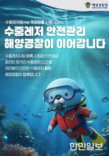 한민일보 서울포커스 박용남 기자 | 완도해양경찰서는 오는 23일부터 수중레저 안전관리 업무가 해양경찰청으로 이관됨에 따라, 수중레저 활동 안전사고 예방을 위한 안전관리를 본격 추진한다.