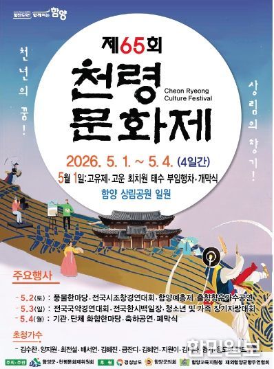 한민일보 서울포커스 김서윤 기자 | 함양군을 대표하는 종합문화축제 ‘제65회 천령문화제’가 오는 5월 1일부터 4일까지 4일간 천년의 숲 상림공원 일원에서 열린다.