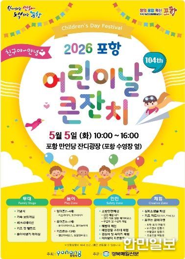 한민일보 서울포커스 임경복 기자 | 포항시는 제104회 어린이날을 맞아 내달 5일 남구 만인당 잔디광장에서 ‘2026 포항 어린이날 큰 잔치’를 개최한다.