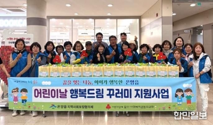 한민일보 서울포커스 기자 | 울주군 온양읍 지역사회보장협의체가 22일 온양읍 행정복지센터에서 지역 저소득가구의 미취학·초등학생을 대상으로 어린이날 행복드림 꾸러미 전달식을 가졌다.