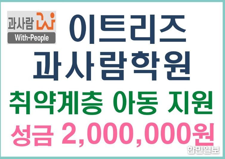 이번 성금은 경제적 어려움을 겪고 있는 저소득 취약계층 아동 20명의 학업 지원을 위해 마련됐으며, ㈜이트리즈 과사람학원은 매년 상·하반기 저소득 아동을 위한 후원을 꾸준히 이어오며 지역사회 나눔 문화 확산에 기여하고 있다.