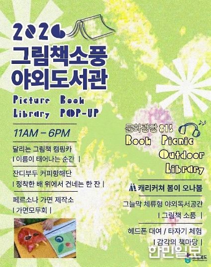 한민일보 서울포커스 임경복 기자 | 충북도가 4월 25일부터 26일까지 이틀간 도청 문화광장 815에서 온 가족이 함께 즐기는 ‘충북야외도서관 '그림책 소풍'’ 행사를 개최한다.
