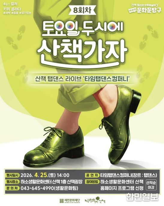 한민일보 서울포커스 김다남 기자 | 제천문화재단이 운영하는 하소생활문화센터 ‘산책’에서 매주 토요일 시민들과 함께하는 문화예술 프로그램 '토요일 두시에 산책가자'의 여덟 번째 무대로 ‘탭댄스 공연’을 선보인다.