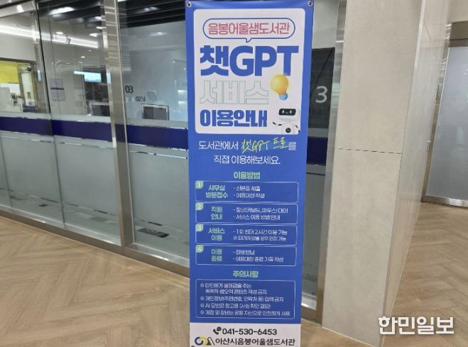 한민일보 서울포커스 임경복 기자 | 아산시 음봉어울샘도서관은 4월부터 챗GPT 유료 계정을 활용한 인공지능(AI) 서비스를 본격 운영한다.