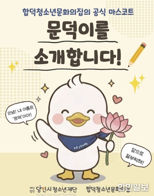 한민일보 서울포커스 임경복 기자 | (재)당진시청소년재단 합덕청소년문화의집 청소년운영위원회 T.B.T는 지난 3월 16일부터 4월 18일까지 진행한 마스코트 네이밍 공모전을 통해 합덕청소년문화의집의 마스코트 이름을 ‘문덕’이로 최종 선정했다고 밝혔다.