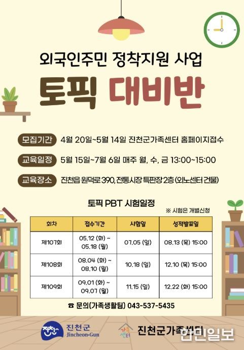 교육 신청은 오는 5월 14일까지이며, 진천군에 거주하는 외국인 주민은 누구나 신청할 수 있다.