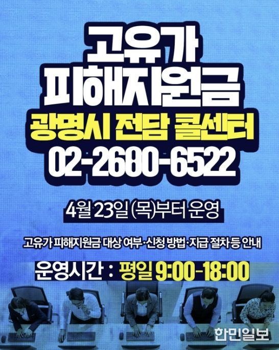 한민일보 서울포커스 임광현 기자 | 광명시가 ‘고유가 피해지원금’ 지급 관련 민원에 신속히 대응하고자 전담 콜센터를 23일 오전 9시부터 운영한다.