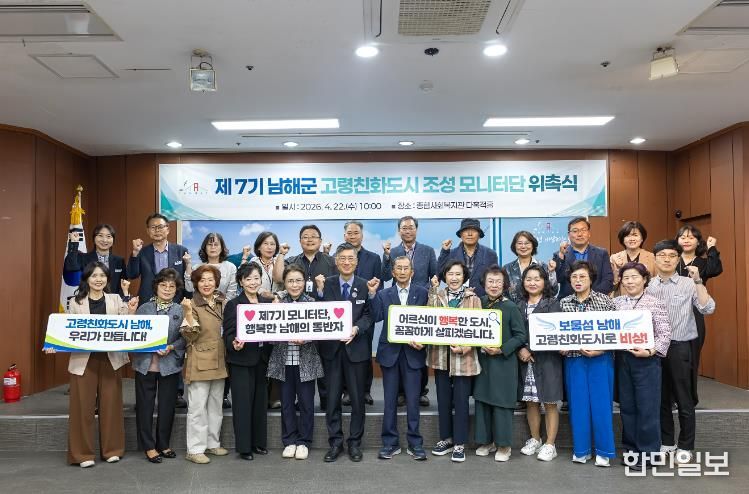 한민일보 서울포커스 김서윤 기자 | 남해군은 22일 종합사회복지관 지하 다목적홀에서 제7기 남해군 고령친화도시 조성 모니터단 위촉식 및 역량강화 교육을 개최했다.