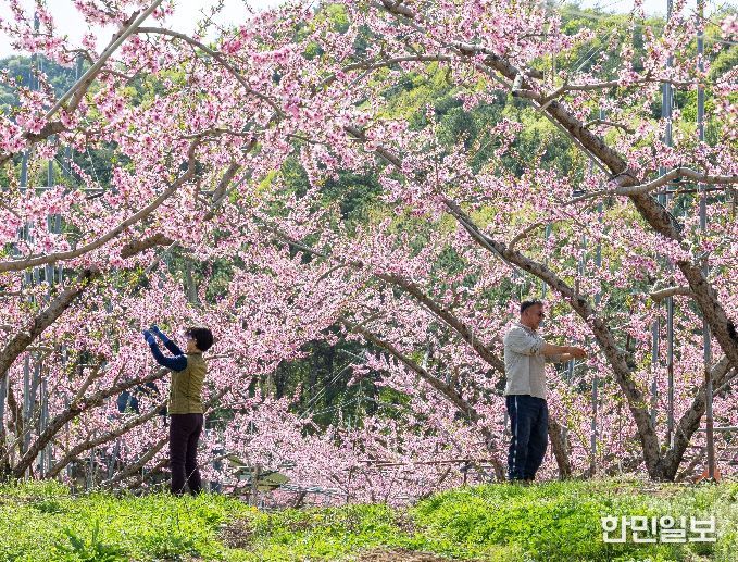 한민일보 서울포커스 김다남 기자 | 충북 괴산군 청천면 금평리에서 연분홍 복숭아꽃이 활짝 피며 농가에 봄기운을 더하고 있다.