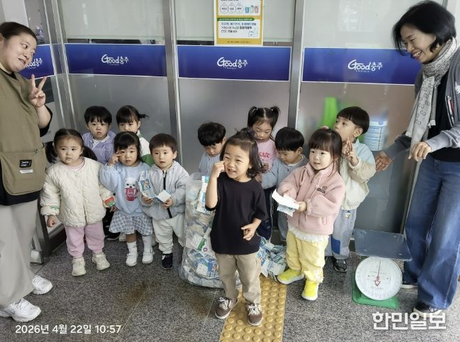 한민일보 서울포커스 김다남 기자 | 충주시 대소원면 소재 코아키즈어린이집 원생들이 22일 자원 재순환의 가치를 실천하기 위해 대소원면행정복지센터를 방문했다.
