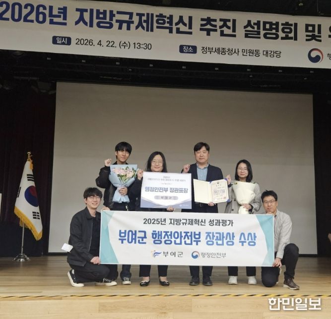 한민일보 서울포커스 유돈상 기자 | 충남 부여군은 행정안전부 주관‘2025 지방자치단체 규제혁신 추진 성과평가’에서 행정안전부 장관 표창을 받았다고 23일 밝혔다.