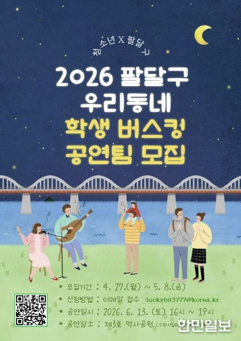 한민일보 서울포커스 진광성 기자 | 수원시 팔달구가 청소년들이 직접 주인공이 되어 공연에 참여하고 즐기는 ‘2026 팔달구 우리동네 학생 버스킹’의 공연팀을 모집한다고 밝혔다.